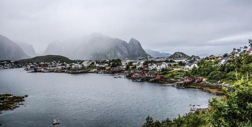 Keywords: lofoten norway islands fisherman's village nordic nordland village reine moskenesoya town mountain scenery sky europe scandinavia landscape norwegian sea fjord nature north scenic water arctic travel outdoors fog foggy cloudy coast