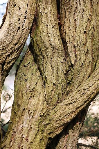 Keywords: log devoured nature wood tree structure tree bark branches overgrown grove hazel datailaufnahme