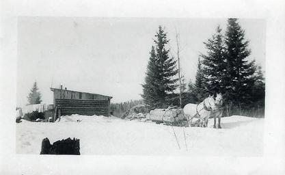 | Keywords: logging horses team bush logging camp loggingcamp bush camp bushcamp brooks lake snow outdoor blackandwhite black and white Sandy and Prince made up the logging team of horses at Brooks Lake. Sandy and Prince made up the logging team of horses at Brooks Lake. |