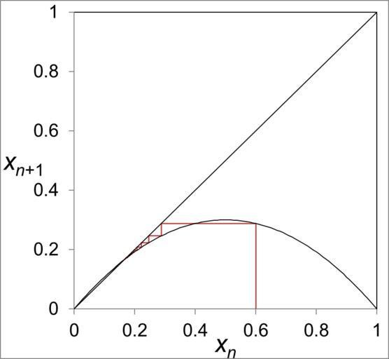 | Keywords: Logistic map cobweb plot a=1.2.png ja パラメータa 1 2 0 6 単調減少の例 収 は約0 16667 en parameter a 1 2 initial value 0 6 an example of monotonic decrease convergence value approx 0 16667 2014-11-16 own Yapparina other versions cc-zero Uploaded with UploadWizard Logistic map Cobweb plots |