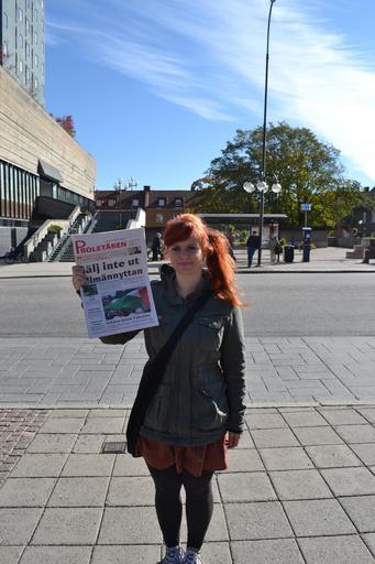 | Keywords: Lolloprol.jpg sv Proletärenförsäljare på Olof Palmes torg i Örebro september 2011 Rubrikerna är Sälj inte ut allmännyttan och Erkänn staten Palestina en Salesman of Proletären The Proletarian at the square Olof Palmes Torg in Örebro september 2011 Headlines are Dont sell the public owned houses and Acknowledge the state of Palestine 2011-09-24 own Hedman cc-zero Uploaded with UploadWizard Kommunistiska Partiet Newspapers of Sweden Standing women Red haired women | ||||
