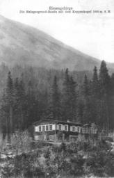 Keywords: Lomiczka Old 01.jpg en Łomniczka Hut Karkonosze Germany now Poland <br> de Melzgergrund-Baude Riesengebirge<br>pl Schronisko Nad Łomniczką <br> Kunstverlag Max Leipelt Warmbrunn Old postcard; from my personal collection 2006-08-29 Jojo en Jojo_1 pl Jojo Anonymous-EU - public domain Anonymous-EU History of Karkonosze Postcards of former German territorries L Hostels in Karkonosze Poland |