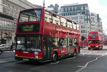 | Keywords: London General PDL32 on 87.JPG Strand London past Charing Cross railway station to terminate in the Aldwych Infront is London General bus PDL32 reg PN03 ULR a 2003 Dennis Trident double-decker with Plaxton President bodywork on route 87 Behind it is First London Routemaster RM1562 562 CLT operating heritage route 9 Own 2008-04-10 Arriva436 London General bus PDL32 PN03 ULR 2003 Transbus Trident 2 Transbus President Strand route 87 10 April 2008 jpg First London Routemaster RM1562 562 CLT heritage route 9 Strand April 2008 jpg Images by Arriva436 Buses on the Strand London PDL class London buses on route 87 Cropped UK bus images AEC Routemaster buses in the United Kingdom scenes Comparison images of Routemaster buses |
