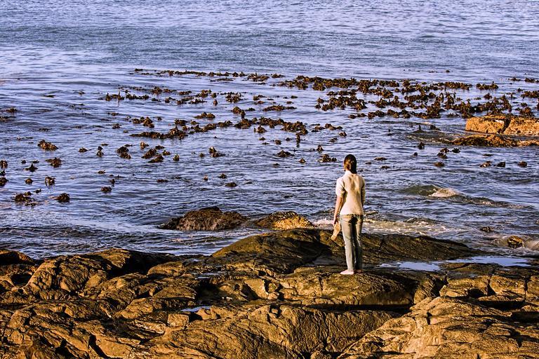 Keywords: lonely alone girl female woman young solitude teenager loneliness sad depressed seaside rocks thinking wondering summer despair longing pensive lost confused distant