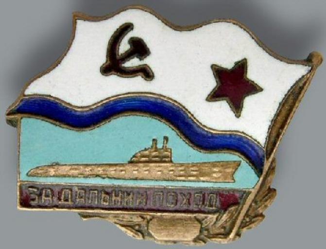 | Keywords: Long cruise badge submarine Russian Red Banner Fleet.jpg en Badge For Long Range Cruise submarines Awarded to the most distinguished highly disciplined military and civilian personnel of the Navy who participated in long-range cruises on vessels of the Navy provided that the missions were successful For all vessels transition from one ocean to another; for vessels of under 1000 tons a 30 day cruise with a distance of at least 500 miles from departure point; for vessels of over 1000 tons a 45 day cruise depending on home port Northern Fleet - the limits of the Norwegian Sea Pacific fleet “ 3000 miles from point of origin Black Sea Fleet and the Novorossiysk Naval district - outside of the Aegean Sea Baltic fleet - beyond the North Sea Specifically for submarines a cruise with no docking amounting to more than half of the full autonomy of the vessel own Fdutil Military badges of the Soviet Union |