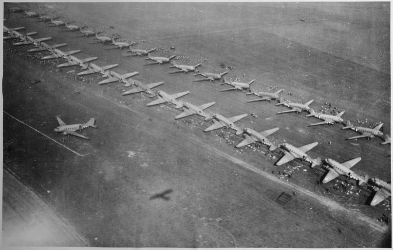 Keywords: Long, twin lines of C-47 transport planes are loaded with men and equipment at an airfield from which they took off... - NARA - 535551.tif NARA-image-full en Long twin lines of C-47 transport planes are loaded with men and equipment at an airfield from which they took off for Holland September 17 1944 The C-47's carried paratroopers of the First Allied Airborne Army England nl Twee rijen C-47 transportvliegtuigen staan geladen met mannen en uitrusting op een vliegveld klaar voor vertrek naar Nederland De C-47ers hebben parachutisten aan boord van het First Allied Airborne Army Scope and content General notes Use War and Conflict Number 1063 when ordering a reproduction or requesting information about this image 535551 Local identifier 208-AA-56T 4 Office for Emergency Management Office of War Information Overseas Operations Branch New York Office News and Features Bureau 12/17/1942 - 09/15/1945 Still Picture Records Section Special Media Archives Services Division NWCS-S National Archives at College Park 8601 Adelphi Road College Park MD 20740-6001 1942 - 1945 Record group Record Group 208 Records of the Office of War Information 1926 - 1951 Record group ARC 535 Photographs of the Allies and Axis compiled 1942 - 1945 Series ARC 535523 File unit File unit ARC Variant control numbers NAIL Control Number NWDNS-208-AA-56T 4 yes Other versions NARA-cooperation PD-USGov Douglas C-47 Skytrain USAAF Operation Market Garden |