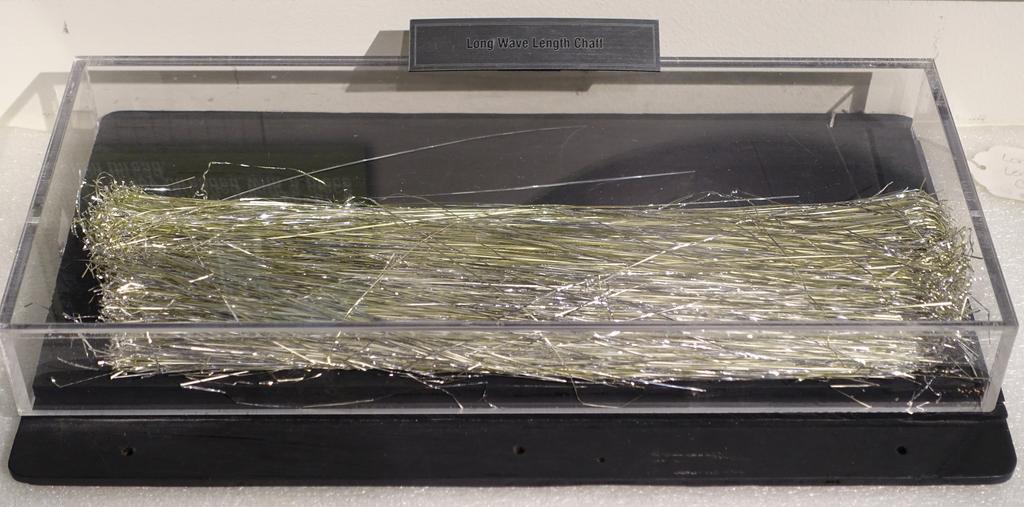 Keywords: Long wave length chaff - National Electronics Museum - DSC00461.JPG en Exhibit in the National Electronics Museum 1745 West Nursery Road Linthicum Maryland USA All items in this museum are unclassified The museum permitted photography without restriction 2014-07-21 15 26 18 own Daderot cc-zero Electronic warfare in the National Electronics Museum Uploaded with UploadWizard Chaff |