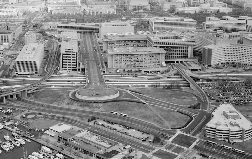 | Keywords: Looking north at LEnfant Plaza - Washington DC.jpg L'Enfant Plaza L'Enfant Promenade and part of Southwest Washington D C 1990 The Potomac River waterfront is at the bottom of the image The six-lane divided street that is Maine Avenue SW can be seen just above the waterfront and its buildings L'Enfant Promenade is the prominent street extending north from Benjamin Banneker Park Benjamin Banneker Park and Overlook in the lower-center of the photograph ; the James V Forrestal Building appears to block it off and the Smithsonian Castle can just be seen beyond the Forrestal Building To the left of L'Enfant Promenade is the U S Postal Service headquarters To the right forming a U-shape around the plaza itself are the North Building South Building and L'Enfant Plaza Hotel 9th Street SW passes beneath it The Robert C Weaver Federal Building curving X-shaped building headquarters of the U S Department of Housing and Urban Development can be seen to the right of the L'Enfant Plaza Hotel The wedge-shaped building in the lower right corner is 800 9th Street SW the U S Department of Agriculture's Cooperative State Research Education and Extensive Service CSREES building Image 1990 Historic American Building Survey images of Washington D C HABS ˆ’Historic American Building Survey images of Washington D C http //lcweb2 loc gov/cgi-bin/displayPhoto pl path /pnp/habshaer/dc/dc0700/dc0776/photos topImages 042585pr jpg U S National Park Service Historic American Building Survey Jack E Boucher photographer 1990 PD-USGov-Interior-HABS ImageNote 1 1125 1051 25 25 2912 1837 2 Banneker Park and Overlook ImageNoteEnd 1 ImageNote 2 1987 473 25 29 2912 1837 2 L'Enfant Plaza Hotel building ImageNoteEnd 2 ImageNote 3 1569 669 29 29 2912 1837 2 South building of L'Enfant Plaza 950 L'Enfant Plaza SW ImageNoteEnd 3 ImageNote 4 863 291 266 62 2912 1837 2 James V Forrestall Building ImageNoteEnd 4 ImageNote 5 2501 586 382 84 2912 1837 2 Robert C Weaver Federal Building ImageNoteEnd 5 L'Enfant Plaza View Benjamin Banneker Park View Southwest Washington D C View Aerial photographs of Washington D C L'Enfant Plaza Robert C Weaver Federal Building ¢views City blocks L'Enfant Plaza 1990 in Washington D C L'Enfant Plaza Historic American Buildings Survey of Washington D C L'Enfant Plaza Jack Boucher L'Enfant Plaza |
