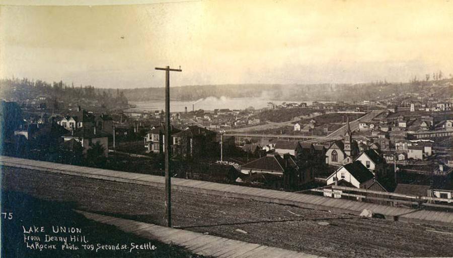 Keywords: Looking north from near 5th Ave and Stewart St toward Lake Union, Seattle, Washington, ca 1891 (LAROCHE 343).jpeg Photograph Creator Frank La Roche From album entitled Prospectus of the Lake Union Improvement Company under the management of Mr L H Griffith p 21 PH Coll 33 21 Subjects LCTGM Churches--Washington State --Seattle Subjects LCSH Lake Union Improvement Company Seattle Wash ; Seattle Wash --Growth--History; Union Lake Wash ; Norwegian-Danish Baptist Church Seattle Wash View of South Lake Union from Denny Hill which was later regraded away depicted place Seattle Washington circa 1891 Institution University of Washington UWASH-LAROCHE-source accession number laroche 343 PD-old-auto-1923 1936 Information field Order Number LUC08 ImageNote 1 332 203 32 24 800 455 2 Westlake Avenue ImageNoteEnd 1 Denny Regrade Seattle Washington South Lake Union Seattle Washington Lake Union Seattle Washington in the 1890s Norwegian Danish Baptist Church Seattle Prospectus of the Lake Union Improvement Company Black and white photographs |