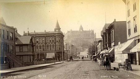 Keywords: Looking north toward the Denny Hotel on 3rd Ave from near Union St, Seattle, Washington, 1891 (LAROCHE 336).jpeg Photograph Creator Frank La Roche From album entitled Prospectus of the Lake Union Improvement Company under the management of Mr L H Griffith p 21 PH Coll 33 21 Subjects LCTGM Streets--Washington State --Seattle Subjects LCSH Third Street Seattle Wash ; Denny Hotel Seattle Wash ; Hotels--Washington State --Seattle; Carts wagons--Washington State --Seattle; Lake Union Improvement Company Seattle Wash ; Seattle Wash --Growth--History depicted place Seattle Washington 1891 Institution University of Washington UWASH-LAROCHE-source accession number laroche 336 PD-old-auto-1923 1936 Information field Order Number LUC10 Washington Hotel Horse-drawn vehicles in the United States Former buildings of Seattle Third Avenue Seattle 1891 in Seattle Prospectus of the Lake Union Improvement Company Black and white photographs ImageNote 1 365 131 179 96 800 453 2 Denny Hotel later Washington Hotel ImageNoteEnd 1 |