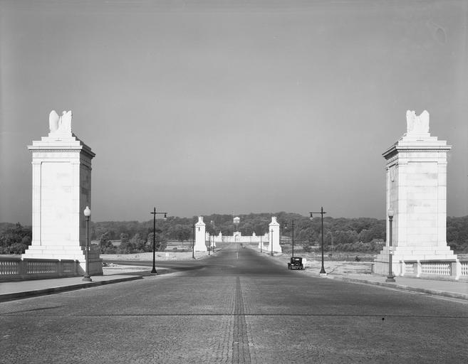 Keywords: Looking W across Columbia Island down Memorial Drive at Arlington National Cemetery - 1930s.jpg en Standing on Columbia Island in the Potomac River facing west across the Boundary Channel Bridge and down Memorial Drive to Arlington National Cemetery in Arlington County Virginia in the United States The Hemicycle the ceremonial entrance to the cemetery can be seen at the end of the road Arlington House the Robert E Lee National Memorial is visible on the hill above The road turning to the left leads to the Mount Vernon Memorial Parkway now known as the George Washington Memorial Parkway Behind the camera is Arlington Memorial Bridge Columbia Island was greatly expanded and heightened by the U S Army Corps of Engineers between 1925 and 1928 As part of the Arlington Memorial Bridge project Boundary Channel Bridge was constructed across the Boundary Channel between 1927 and 1930 The road connecting Columbia Island to the parkway in the south was constructed in 1932 Another park of the bridge project the Hemicycle and Memorial Drive began construction in 1924 and were finished in 1932 The Hemicycle was turned into the Women in Military Service for America Memorial in 1995 and dedicated in 1997 Arlington House began construction in 1802 and the wings were finished in 1804 The center portion of the mansion began construction in 1815 and was finished a year later The Temple of Fame can be seen in the trees just to the left of Arlington House This structure was ordered built by Brigadier General Montgomery C Meigs U S Army Quartermaster General in 1874 Its columns were made from columns taken from the Patent Office then undergoing renovation The roof was made of tin molded to look like marble The cornice of the roof was inscribed with the names of famous Union generals in the American Civil War The Temple of Fame was constructed in the garden on the south side of Arlington House It was torn down in 1967 This image was taken after 1932 when the Boundary Channel Bridge and Memorial Drive were completed but before September 1940 when a major traffic circle was added to Columbia Island between the memorial columns circa 1920 1950 1 negative nitrate 8 x 10 in Theodor Horydczak accession number LC-H824-T-1933-001 interpositive Call Number LC-H824- 1933-001 <P P> P P credit line Rights Advisory Publication may be restricted For information see Horydczak Collection http //lcweb loc gov/rr/print/res/100_hory html thc 5a48919 other versions <gallery> </gallery> PD-USGov Women in Military Service for America Memorial Robert E Lee National Memorial Arlington National Cemetery Main Gates Columbia Island |