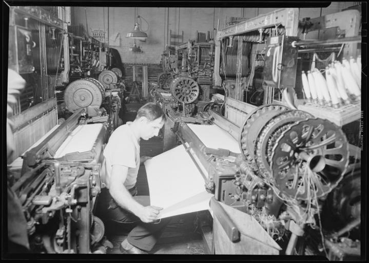 | Keywords: nara:arcid=518591 u.s. national archives usnationalarchives lewis hine lewishine the great depression thegreatdepression paterson new jersey newjersey 1937 blackandwhite monochrome black and white Original Caption: Paterson, New Jersey - Textiles. Looms, March 1937 U.S. National Archives’ Local Identifier: 69-RP-352 Photographer: Hine, Lewis Subjects: The New Deal Tennessee Valley Authority Works Progress Administration Work Portraits The Great Depression Persistent URL: research.archives.gov/description/518591 Repository: Still Picture Records Section, Special Media Archives Services Division (NWCS-S), National Archives at College Park, 8601 Adelphi Road, College Park, MD, 20740-6001. For information about ordering reproductions of photographs held by the Still Picture Unit, visit: www.archives.gov/research/order/still-pictures.html Reproductions may be ordered via an independent vendor. NARA maintains a list of vendors at www.archives.gov/research/order/vendors-photos-maps-dc.html Access Restrictions: Unrestricted Use Restrictions: Unrestricted Original Caption: Paterson, New Jersey - Textiles. Looms, March 1937 U.S. National Archives’ Local Identifier: 69-RP-352 Photographer: Hine, Lewis Subjects: The New Deal Tennessee Valley Authority Works Progress Administration Work Portraits The Great Depression Persistent URL: research.archives.gov/description/518591 Repository: Still Picture Records Section, Special Media Archives Services Division (NWCS-S), National Archives at College Park, 8601 Adelphi Road, College Park, MD, 20740-6001. For information about ordering reproductions of photographs held by the Still Picture Unit, visit: www.archives.gov/research/order/still-pictures.html Reproductions may be ordered via an independent vendor. NARA maintains a list of vendors at www.archives.gov/research/order/vendors-photos-maps-dc.html Access Restrictions: Unrestricted Use Restrictions: Unrestricted |