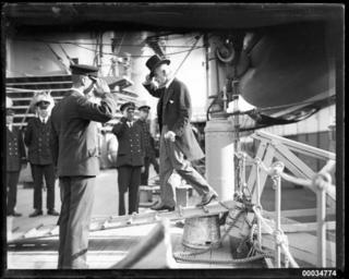 | Keywords: samuel j hood collection samueljhoodcollection hnlms java hnlmsjava hnlms eversten hnlmseversten hnlms de ruyter hnlmsderuyter dutch dutch navy visit to sydney dutchnavyvisittosydney dutch navy dutchnavy royal netherlands navy royalnetherlandsnavy the koninklijke marine thekoninklijkemarine west circular quay westcircularquay sydney harbour sydneyharbour harbour scenes harbourscenes sydney harbour bridge sydneyharbourbridge rear-admiral c c kayser rearadmiralcckayser naval vessel navalvessel hilda violet marks hildavioletmarks marks family marksfamily ernest samuel marks ernestsamuelmarks percy j marks percyjmarks ship warship koninklijke marine koninklijkemarine km hnlms java (1921) hnlmsjava1921 java-class javaclass cruiser light cruiser lightcruiser sunk battle of the java sea battleofthejavasea battle of java sea battleofjavasea blackandwhite monochrome photo border black and white The Koninklijke Marine (Royal Netherlands Navy) including HNLMS JAVA, HNLMS EVERSTEN and HNLMS DE RUYTER arrived in Sydney on 3 October 1930. The ships berthed in West Circular Quay and The Sydney Morning Herald reported on the 'unfamiliar spectacle' of the Dutch squadron arrival. On 10 October, the squadron hosted a reception on board JAVA 'as a return for the hospitality they had received while in Sydney'. The SMH reported that distinguished guests were greeted by the Dutch Consul-General P E Teppema, Madame Teppema and Rear-Admiral Kayser. This photo is part of the Australian National Maritime Museum’s Samuel J. Hood Studio collection. Sam Hood (1872-1953) was a Sydney photographer with a passion for ships. His 60-year career spanned the romantic age of sail and two world wars. The photos in the collection were taken mainly in Sydney and Newcastle during the first half of the 20th century. The ANMM undertakes research and accepts public comments that enhance the information we hold about images in our collection. This record has been updated accordingly. Photographer: Samuel J. Hood Studio Collection Object no. 00034774 Check out our blog on naval visits to Sydney bit.ly/MTtR5H The Koninklijke Marine (Royal Netherlands Navy) including HNLMS JAVA, HNLMS EVERSTEN and HNLMS DE RUYTER arrived in Sydney on 3 October 1930. The ships berthed in West Circular Quay and The Sydney Morning Herald reported on the 'unfamiliar spectacle' of the Dutch squadron arrival. On 10 October, the squadron hosted a reception on board JAVA 'as a return for the hospitality they had received while in Sydney'. The SMH reported that distinguished guests were greeted by the Dutch Consul-General P E Teppema, Madame Teppema and Rear-Admiral Kayser. This photo is part of the Australian National Maritime Museum’s Samuel J. Hood Studio collection. Sam Hood (1872-1953) was a Sydney photographer with a passion for ships. His 60-year career spanned the romantic age of sail and two world wars. The photos in the collection were taken mainly in Sydney and Newcastle during the first half of the 20th century. The ANMM undertakes research and accepts public comments that enhance the information we hold about images in our collection. This record has been updated accordingly. Photographer: Samuel J. Hood Studio Collection Object no. 00034774 Check out our blog on naval visits to Sydney bit.ly/MTtR5H |