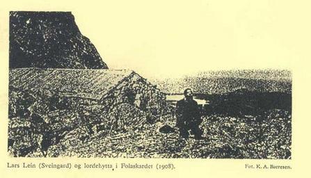 Keywords: Lordehytta (1908) version 2.jpg Lordehytta dry stone hut in Norway 1908 de Lars Lein vor der Lordehytta Lein half Lord Garvagh diese Hütte zu errichten http //www hol-fjellstyre no/img/1_8_medium jpg K A Børresen 1908 Lordehytta 1908 version 2 edit jpg Lordehytta Historical images of Hol Dry stone huts 1908 in Norway Photographs by Karl A Børresen PD-old
