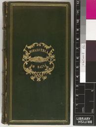| Keywords: Los doze libros de la Eneida ... Traduzida -by G. Hernandez de Velasco- en octava rima y vrso -sic- castellano. - Upper cover (c62aa7).jpg Style Armorial Frame; Caption Upper cover; Colour Green; Edge Unspecified exhibition history Decorative Technique Tooled in gold; Cover Material Leather unspecified Vicente Salva 1786-1849 was a Spanish political exile in England who opened a bookshop with his son A relation in Valencia was a binder who may have worked on some of the books object history Text 1566; Anures; Salva Biblioteca de object type Cc-zero place of creation Binding Spain place of discovery Unspecified British Library image http //www bl uk/catalogues/bookbindings/LargeImage aspx RecordId 020-000010510 ImageId ImageId 44860 Copyright BL Los doze libros de la Eneida Traduzida by G Hernandez de Velasco en octava rima y vrso sic castellano Uploaded with GWToolset Los doze libros de la Eneida Traduzida by G Hernandez de Velasco en octava rima y vrso sic castellano - Upper cover c62aa7 http //www webarchive org uk/bldatasets/bindings/11460_4 jpg 19th-century bookbinding Bookbinding British Library Bookbindings |