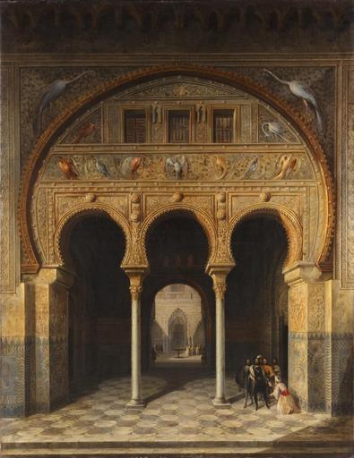 Keywords: Los Reales Alcázares de Sevilla, de Manuel Barrón (Museo del Romanticismo de Madrid).jpg La obra representa el Salón del Techo de Felipe II del Real Alcázar de Sevilla y en primer plano aparece el Arco de los Pavones 1846 oil on canvas Size cm 105 135 Institution Museo del Romanticismo http //ceres mcu es/pages/Main accession number CE7157 http //ceres mcu es/pages/Main PD-old-100 Arco de los Pavones Palacio de Pedro I Alcázar de Sevilla Philip II Ceiling Room Palacio de Pedro I Alcázar de Sevilla Paintings by Manuel Barrón y Carrillo in the Museo del Romanticismo de Madrid 1846 paintings in Spain Andalusia in art |