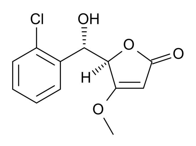 Keywords: Losigamone skeletal.svg losigamone own Anypodetos 2010-03-08 BKchem 001 -check Monochlorobenzenes Secondary alcohols Gamma-lactones Methyl ethers Anticonvulsants