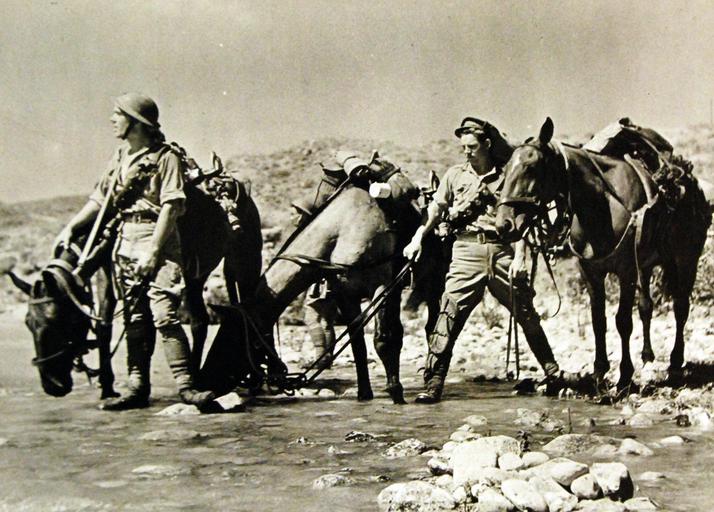 Keywords: outdoor Lot 11643-2: Middle East Activities. The Allied Advance into Syria. Axis infiltration into Syria compelled the advance of eh Allied forces to avert so dangerous a threat. British and Free French Forces have been opposed by the Vichy troops, and there has been hard fitting along the entire front from the Mediterranean to Damascus and Palmyra. Shown: Men of the Cavalry Regiment watering their horses in the River Litani, July 30, 1941. Office of War Information Photograph. (2016/02/11). Lot 11643-2: Middle East Activities. The Allied Advance into Syria. Axis infiltration into Syria compelled the advance of eh Allied forces to avert so dangerous a threat. British and Free French Forces have been opposed by the Vichy troops, and there has been hard fitting along the entire front from the Mediterranean to Damascus and Palmyra. Shown: Men of the Cavalry Regiment watering their horses in the River Litani, July 30, 1941. Office of War Information Photograph. (2016/02/11). |