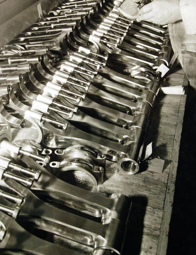 | Keywords: indoor Lot-2147-4: Packard Motor Car Company, Detroit, Michigan, May 1941. Finished connecting rods ready to be assembled to the crankshaft of a marine engine. Photographed by Alfred T. Palmer, Office of War Information Photograph. Courtesy of the Library of Congress. (2016/04/22). Lot-2147-4: Packard Motor Car Company, Detroit, Michigan, May 1941. Finished connecting rods ready to be assembled to the crankshaft of a marine engine. Photographed by Alfred T. Palmer, Office of War Information Photograph. Courtesy of the Library of Congress. (2016/04/22). |