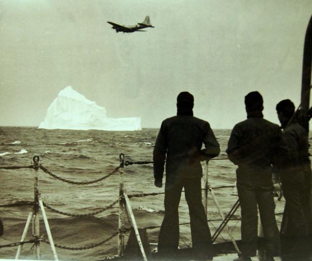 | Keywords: Lot 2282-12: International Ice Patrol – 1948. Combined air and surface operations and the effective use of radar by Coast Guard patrol units contributed to the success of the 1948 International Ice Patrol. Coast Guard ice observers are trained in observing and evaluating the size, direction, and speed of iceberg travel. Ice observer stands continuous watch in the “nose” of the plane. Combined air and surface operations and the effective use of radar by Coast Guard patrol units contributed to the success of the 1948 International Ice Patrol. It was the mission of the 1948 patrol to locate and report ice conditions constituting a menace to navigation, to determine set and drift of icebergs, to collect weather information and surface and sub-surface oceanography data, and to keep all interested parties and commercial shipping informed thereof. The importance to mariners of “ice broadcasts” is evidenced by the fact that practically all commercial radio transmission ceases during these broadcasts. The International Ice Patrol along the steamer lanes of the North Atlantic is conducted by the United States Coast Guard. Coast Guard cutters and planes assigned to the patrol are based at Argentia, Newfoundland. Shown here are three crew members of the U.S. Coast Guard ship Mendota (WHEC 69) watch the Coast Guard ice observation plane fly over a large berg. Around May 1st, fog blankets this area, a clear day like this was a real break for the photographer. Photographed October 3, 1948. (2015/10/09). Lot 2282-12: International Ice Patrol – 1948. Combined air and surface operations and the effective use of radar by Coast Guard patrol units contributed to the success of the 1948 International Ice Patrol. Coast Guard ice observers are trained in observing and evaluating the size, direction, and speed of iceberg travel. Ice observer stands continuous watch in the “nose” of the plane. Combined air and surface operations and the effective use of radar by Coast Guard patrol units contributed to the success of the 1948 International Ice Patrol. It was the mission of the 1948 patrol to locate and report ice conditions constituting a menace to navigation, to determine set and drift of icebergs, to collect weather information and surface and sub-surface oceanography data, and to keep all interested parties and commercial shipping informed thereof. The importance to mariners of “ice broadcasts” is evidenced by the fact that practically all commercial radio transmission ceases during these broadcasts. The International Ice Patrol along the steamer lanes of the North Atlantic is conducted by the United States Coast Guard. Coast Guard cutters and planes assigned to the patrol are based at Argentia, Newfoundland. Shown here are three crew members of the U.S. Coast Guard ship Mendota (WHEC 69) watch the Coast Guard ice observation plane fly over a large berg. Around May 1st, fog blankets this area, a clear day like this was a real break for the photographer. Photographed October 3, 1948. (2015/10/09). |