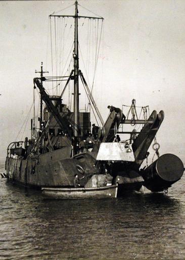 Keywords: boat vehicle outdoor Lot-3478-35: British Activities, WWII. Boom Defences That Guard the Harbors of Britain. Men who are used to handling fishing gear in peacetime are particularly suited to boom defense work in wartime. These ratings of the Royal Navy man boom defense vessels which lay moorings and cables for pontoon defenses. Shown: Laying out moorings from a boom defense vessel. Office of Emergency Management. (2016/03/04). Lot-3478-35: British Activities, WWII. Boom Defences That Guard the Harbors of Britain. Men who are used to handling fishing gear in peacetime are particularly suited to boom defense work in wartime. These ratings of the Royal Navy man boom defense vessels which lay moorings and cables for pontoon defenses. Shown: Laying out moorings from a boom defense vessel. Office of Emergency Management. (2016/03/04). |