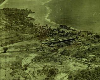 Keywords: outdoor Lot-5279-25: Task Group 38 Raids on Palau Islands, 13-14 September 1944. Wreckage on Palau Bears Testimony to Navy Raids. Skelton framework of buildings on Anguar, Palau Island, is evidence of the accuracy of the Navy bombers who struck the Japanese base on July 26-27, 1944, in a devastating softening-up operation before D-Day, September 14, 1944. The structures formerly housed a Japanese phosphate factory. In the background, underwater obstacles can be seen as the tide ebbs. U.S. Navy Photograph. (2015/10/30) Photographed through Mylar sleeve. Lot-5279-25: Task Group 38 Raids on Palau Islands, 13-14 September 1944. Wreckage on Palau Bears Testimony to Navy Raids. Skelton framework of buildings on Anguar, Palau Island, is evidence of the accuracy of the Navy bombers who struck the Japanese base on July 26-27, 1944, in a devastating softening-up operation before D-Day, September 14, 1944. The structures formerly housed a Japanese phosphate factory. In the background, underwater obstacles can be seen as the tide ebbs. U.S. Navy Photograph. (2015/10/30) Photographed through Mylar sleeve. |