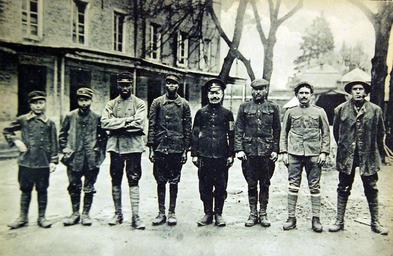 Keywords: people outdoor Lot-7676-2-6: WWI, German Activities. Translated from German: “War on the Western Front: Group of prisoners eight different Volker. From left: Anamit (?) Tunisian, Senegalese, Sudanese, Russian, Canadian, Portuguese, and American.” Courtesy of the Library of Congress. (2016/09/02). Lot-7676-2-6: WWI, German Activities. Translated from German: “War on the Western Front: Group of prisoners eight different Volker. From left: Anamit (?) Tunisian, Senegalese, Sudanese, Russian, Canadian, Portuguese, and American.” Courtesy of the Library of Congress. (2016/09/02). |