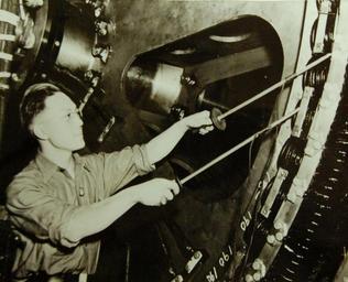 | Keywords: Lot-9427-11: Chinese on America’s Home Front. Many Chinese are doing their part for democracy on the U.S. industrial front while American forces fight side by side with their Chinese comrades-in-arms on the United Nations battlefields in the Orient. This young Chinese, Francis Li of Hong Kong, who has lived in the U.S. for five years, now works in a plant for the U.S. Maritime Commission. Here, he tests the rotor of a marine motor. Photograph released March 1942 by Office of War Information. (2015/11/20). Lot-9427-11: Chinese on America’s Home Front. Many Chinese are doing their part for democracy on the U.S. industrial front while American forces fight side by side with their Chinese comrades-in-arms on the United Nations battlefields in the Orient. This young Chinese, Francis Li of Hong Kong, who has lived in the U.S. for five years, now works in a plant for the U.S. Maritime Commission. Here, he tests the rotor of a marine motor. Photograph released March 1942 by Office of War Information. (2015/11/20). |