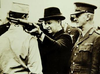 | Keywords: indoor Lot-9429-2: Australian War Minister Sights a New U.S. Garand. F.M. Forde, Australian Army Minister, sights an American Garand, the World’s most effective army rifle, over the shoulder of a U.S. soldier at a U.S. Army camp somewhere in Australia. Office of War Information Photograph, 5-8 May 1942. Original photograph is small. (2015/12/18). Lot-9429-2: Australian War Minister Sights a New U.S. Garand. F.M. Forde, Australian Army Minister, sights an American Garand, the World’s most effective army rifle, over the shoulder of a U.S. soldier at a U.S. Army camp somewhere in Australia. Office of War Information Photograph, 5-8 May 1942. Original photograph is small. (2015/12/18). |