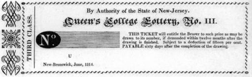 Keywords: Lottery ticket - Queen's College Lottery, New-Brunswick, New Jersey, USA, 1814.jpg Lottery ticket to raise money for Queen's College now Rutgers University New-Brunswick New Jersey USA LOC-American-Memory-Collections rbpe 09901400 1814-06 State of New Jersey USA PD-old-100 Lottery tickets Rutgers University 1814 in the United States |