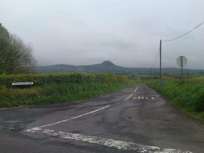 | Keywords: Loughloughan Road at junction of Longmore Road.JPG en A view of Loughloughan Road from the Longmore Road looking across at Slemish Mountain outside Aughafatten County Antrim Own DColt 2009-05-22 54 55 29 3 N 6 7 27 7 W Roads in County Antrim May 2009 in Northern Ireland Aughafatten Slemish |
