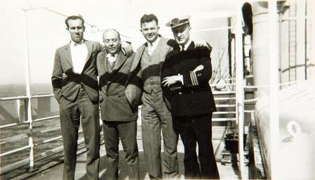 Keywords: louis e. e slim gordon special collection photo aviator mechanic louis gordon louisgordon louis 'slim' gordon louisslimgordon lou gordon lougordon slim gordon slimgordon people groupshot Catalog #: 09_01340 Title: Louis E. ""Slim"" Gordon Special Collection Photo Additional Information: Lou Gordon with three unidentified men on deck of ship. Handwritten inscription 'enroute from Buenos Aires on SS American Legion"", Louis Gordon was the co-pilot/ mechanic with Wilmer Stultz on the 1928 Transatlantic flight of the Fokker F7 ""Friendship"" which flew from Newfoundland to Wales in 1928. Amelia Earhart was a passenger on this flight and it is remembered as the first air crossing of the Atlantic by a female. Tags: Louis E. ""Slim"" Gordon Special Collection Photo Repository: San Diego Air and Space Museum Archive Catalog #: 09_01340 Title: Louis E. ""Slim"" Gordon Special Collection Photo Additional Information: Lou Gordon with three unidentified men on deck of ship. Handwritten inscription 'enroute from Buenos Aires on SS American Legion"", Louis Gordon was the co-pilot/ mechanic with Wilmer Stultz on the 1928 Transatlantic flight of the Fokker F7 ""Friendship"" which flew from Newfoundland to Wales in 1928. Amelia Earhart was a passenger on this flight and it is remembered as the first air crossing of the Atlantic by a female. Tags: Louis E. ""Slim"" Gordon Special Collection Photo Repository: San Diego Air and Space Museum Archive |