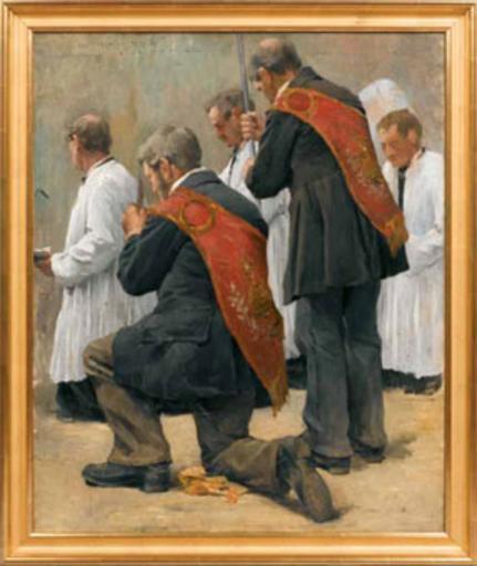 | Keywords: Louis-Émile Minet Les Charitons.jpg Artwork Creator Louis-Émile Minet Members of a French Brotherhood of Charity take part in a ceremony before 1880 Oil on canvas Institution Musée de Normandie object history credit line accession number Musée de Normandie http //www musee-de-normandie caen fr/collections/rites asp info http //www musee-de-normandie caen fr/collections/permanente/artisanat/charitonsZ jpg image PD-old-80 Paintings of men of France Prayer in art 19th-century paintings Confréries de charité Louis-Émile Minet Paintings in Normandy Museum |