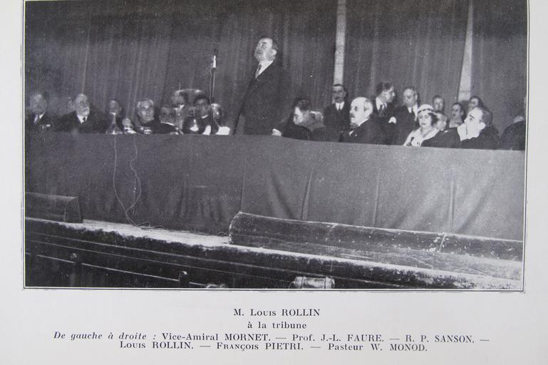 Keywords: Louis ROLLIN, à la tribune.jpg fr De gauche à droite Vice-Amiral Mornet - Prof J -L Faure - R P Sanson - Louis Rollin - François Pietri - Pasteur W Monod à la tribune d'un meeting parisien de protestation des intellectuels français contre les persécutions antisémites en Allemagne 1933 1933 http //www europeana eu/portal/record/09305/70A738838BB9C5295DB486F78D2EC3E70B63AC13 html Lipschutz other versions cc-zero Louis Rollin Uploaded with UploadWizard Europeana |