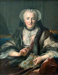 Keywords: Louis Tocqué, 1753, Madame Dangé faisant des noeuds, oil on canvas, 83 x 63 cm, Louvre Museum, Paris.jpg Artwork Creator Louis Tocqué Луи Токке ÐŸÐ¾Ñ Ñ‚Ñ ÐµÑ‚ мадам Данже 1753 ÐŸÐ°Ñ Ð¸Ð¶ Ð›ÑƒÐ²Ñ 1753 oil canvas cm 83 63 Museum Louvre Sully 2nd floor 2 e étage Les peintres de Diderot Salle 47 Accession number R F 1480 http //cartelfr louvre fr/cartelfr/visite srv car_not_frame idNotice 11672 Musée du Louvre 000PE002615 Other versions File Louis Tocque 01 jpg Notes L'épouse du fermier-général François-Balthazar Dangé de Fay s'aide d'une navette pour former des noeuds sur un cordon de soie Si le raffinement du coloris évoque Nattier maître de l'artiste le visage mélancolique aux traits déjà affaissés rappelle plutôt Perronneau See source above PD-old-100 DEFAULTSORT 1753 Madame Dange Portrait paintings by Louis Tocqué French paintings in the Louvre - Room 47 1750s paintings in the Louvre 1753 portrait paintings from France 18th-century oil portraits of sitting women at half length 18th-century portrait paintings in the Louvre 18th-century women of France Females doing needlework in portraits Front view portrait paintings of females Fur capes in art Lace caps in art Pilasters in portraits |