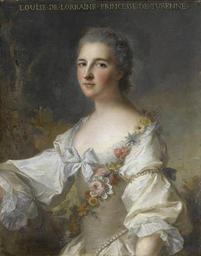 | Keywords: Louise de Lorraine, princesse de Turenne par Nattier.jpg  Artwork Creator Jean-Marc Nattier Portrait of Louise Henriette Gabrielle de Lorraine 1718-1788 Princesse de Turenne Duchess of Bouillon 1746 Oil on canvas cm 80 65 Institution Versailles http //www google co uk/imgres imgurl http //2 bp blogspot com/_hjD61YU8VYs/SgfwqzM9P1I/AAAAAAAAF_U/b2L57WLO8lQ/s400/Victoire 2Bde 2BFrance 2Bby 2BJean 2BMarc 2BNattier jpg imgrefurl http //ann-lauren blogspot com/2009/05/18th-cent-princess-victoire-louise html h 381 w 308 sz 33 tbnid q0JffGxkCdeQjM tbnh 250 tbnw 202 prev /images 3Fq 3Djean 2Bmarc 2Bnattier hl en usg __5LGC_n2DCq4NOzvvlQ9eYQFhrq8 ei AkTUS5TkEISi0gStm-TZDQ sa X oi image_result resnum 9 ct image ved 0CAwQ9QEwCA 000PE007984 other versions PD-old-100 DEFAULTSORT 1746; Louise Henriette Gabrielle de Lorraine Portrait paintings by Jean-Marc Nattier 18th-century portrait paintings in the Musée national du Château de Versailles Louise of Lorraine Duchess of Bouillon 1746 oil on canvas paintings in France Portrait 1746 portrait paintings from France 18th-century oil portraits of standing women at half length Females wearing rouge in portraits Females with clothing with pearls in art Garland of flowers in portrait paintings Paintings with descriptive text on the artwork Portrait paintings of females with flowers Portrait paintings of women of France Powdered hair in art Rococo portrait paintings of women White clothing in art female Princesses of Turenne |