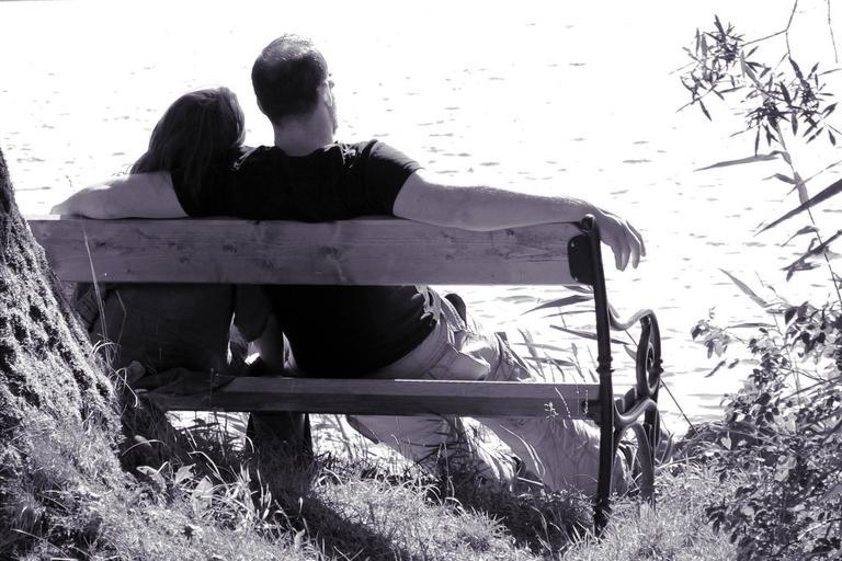 Keywords: lovers man woman for two togetherness together love bench bank harmony relax rest look