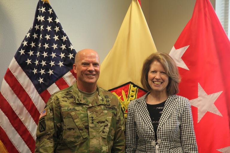 Keywords: leader visit leadervisit installation management command installationmanagementcommand imcom us army usarmy installation joint base san antonio jointbasesanantonio texas fort sam houston fortsamhouston people Lt. Gen. Kenneth Dahl, Commanding General for U.S. Army Installation Management Command, meets with Ms. Diane Randon, Deputy Assistant Chief of Staff for Installation Management, May 5, 2016, at the IMCOM headquarters on Joint Base San Antonio, Texas. (U.S. Army photo by Michael Burkhalter.) Lt. Gen. Kenneth Dahl, Commanding General for U.S. Army Installation Management Command, meets with Ms. Diane Randon, Deputy Assistant Chief of Staff for Installation Management, May 5, 2016, at the IMCOM headquarters on Joint Base San Antonio, Texas. (U.S. Army photo by Michael Burkhalter.) |