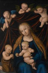 Keywords: Lucas Cranach d.Ä. - Die Jungfrau mit Kind (Heckscher Museum of Art).jpg Artwork Creator Lucas Cranach I 1534 Oil on canvas langSwitch transferred from panel von Holz übertragen in 48 5 33 5 Institution Heckscher Museum of Art not on view accession number 1959 126 http //www heckscher org/pages php which_page collection_image_detail which_image 1959_126 The Heckscher Museum of Art Huntington New York object history credit line August Heckscher Collection langSwitch Inscribed with winged serpent at upper left and dated 1534 signiert oben links mit der geflügelten Schlange und datiert 1534 616152 PD-old-100 DEFAULTSORT Cranach Lucas 1; Madonna and Child with Saint John; Heckscher Museum of Art Madonna and Child by Lucas Cranach the Elder Heckscher Museum of Art 16th-century paintings of Madonna and Child with the Infant Saint John |