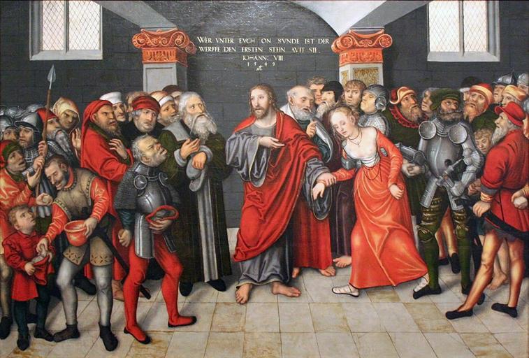 Keywords: Lucas Cranach d. J. - Christus en de overspelige vrouw.JPG workshop of Jesus Christ and the woman taken in adultery 1549 oil canvas cm 114 176 Museum Bonnefantenmuseum 4034 44957 WER UNTER EVCH ON SVNDE IST DER / WERFFE DEN ERSTEN STEIN AVFF SIF / IOHANN VIII top centre 1549 date top centre Object history ProvenanceEvent loan Bonnefantenmuseum Rijksdienst voor het Cultureel Erfgoed http //collectie icn nl/frmDetails aspx obs_guid 4c8c68b8-6c9e-4fb0-90e7-4dfee99b61b9 NK1797 Ophelia2 Artwork PD-old-100 Photo DEFAULTSORT Cranach Lucas 2; Christ and the Adulteress; Bonnefantenmuseum; 1549 Paintings by Lucas Cranach the Younger 1549 paintings Paintings with years of production artist 1540s paintings in the Netherlands 16th-century oil on canvas paintings in the Netherlands 16th-century religious paintings in the Netherlands Bible quotations 16th-century paintings of Jesus Christ and the woman taken in adultery Paintings with inscriptions German paintings in the Bonnefantenmuseum 1540s paintings from Germany Files by User Ophelia2 German inscriptions in art 1540s religious paintings |