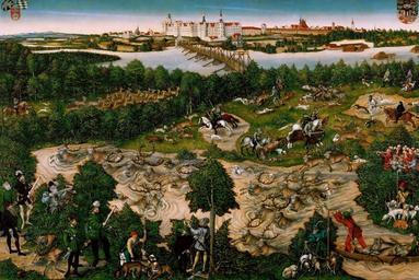 Keywords: Lucas Cranach d. J. - Hirschjagd des Kurfürsten Johann Friedrich (KHM Wien).jpg Artwork Creator Lucas Cranach d J langSwitch Abgebildete Personen Kurfürst Johann Friedrich Sohn des Johann von Sachsen Wettin Kaiser Karl V Sohn des Philipp von Habsburg All persons shown Elector John Frederick son of John of Saxony and Emperor Charles V son of Philip of Habsburg 1544 oil canvas lime cm 116 176 5 Institution Kunsthistorisches Museum accession number GG 856 http //bilddatenbank khm at/viewArtefact id 547 Bilddatenbank KHM langSwitch Signatur Bez rechts unten am Schnabel des Kahns mit der Schlange mit liegenden Flügeln dat 1544 Beschriftung in den oberen Ecken die Wappen von Kurbayern und Kursachsen signed with winged serpend and dated š1544 ˜ object history Sammlung Leopold Wilhelm Friedländer Rosenberg No FR331b http //en gallerix ru/album/KHM/pic/glrx-2009317690 gallerix ru other versions PD-old-100 Hunting scenes by Lucas Cranach II Stag Hunt of the Elector Johann Friedrich in the Kunsthistorisches Museum Hirschjagd des Kurfürsten Johann Friedrich Lucas Cranach d J 04 |