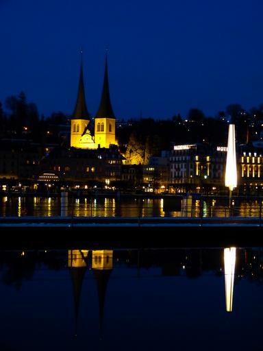 Keywords: lucerne switzerland night mirroring church water