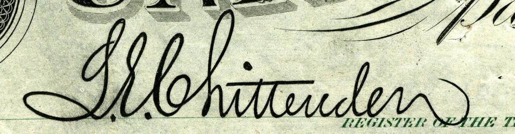 | Keywords: Lucius Eugene Chittenden (Engraved Signature).jpg en Engraved signature on U S Bank Notes “ paper currency 2012-12-26 www nationalcurrencyfoundation org Bureau of Engraving and Printing Smithsonian Institution PD-USGov Engravings Signatures on United States Banknotes Smithsonian Institution Currency National Numismatic Collection Banknote signatures scanned by User Godot13 | ||||