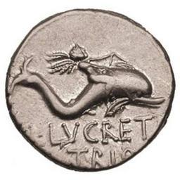 | Keywords: Lucretia3a.jpg en Lucius Lucretius Trio Ca 76 BC AR denarius Laureate head of Neptune right trident over shoulder control number XXI above Winged boy on dolphin right L LVCRETI/TRIO below Cr 390/2 Syd 784 Bab Lucretia 3 Lucius Lucretius Trio Ca 76 BC AR denarius Laureate head of Neptune right trident over shoulder control number XXI above Winged boy on dolphin right L LVCRETI/TRIO below Cr 390/2 Syd 784 Bab Lucretia 3 Re probst 1010-02-16 Lucretia3 jpg CNG relicense cc-zero Lucius Lucretius Trio Ca 76 BC AR denarius Laureate head of Neptune right trident over shoulder control number XXI above Winged boy on dolphin right L LVCRETI/TRIO below Cr 390/2 Syd 784 Bab Lucretia 3 CNG relicense Lucius Lucretius Trio Arion mythology Dolphins on coins Denarius Poseidon on coins 70s BC coins Winged figures on coins -0076 Tridents on coins Coins on white background |