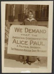 Keywords: Lucy Branham 274007v.jpg Summary Informal portrait full-length Lucy Branham facing forward standing in front of a building and holding a sign We Demand That The American Government Give Alice Paul A Political Offender The Privileges Russia Gave Miyukoff Lucy G Branham of Baltimore Md an organizer for the NWP was a graduate of Washington College who earned graduate degrees at Johns Hopkins and Columbia Branham was arrested picketing Sept 1917 and sentenced to 60 days in Occoquan Workhouse and District Jail She was a speaker in the Prison Special tour of Feb-Mar 1919 Source Doris Stevens Jailed for Freedom New York Boni and Liveright 1920 355 1 photograph print 7 x 5 in accession number Call Number Location National Woman's Party Records Group II Container II 274 Folder Individual Photographs Nos 18-70 B Source Collection Records of the National Woman's Party institution Library of Congress Manuscript Division http //hdl loc gov/loc mss/mnwp 274007 PD-1923 PD-Harris-Ewing Lucy Gwynne Branham Alice Paul |