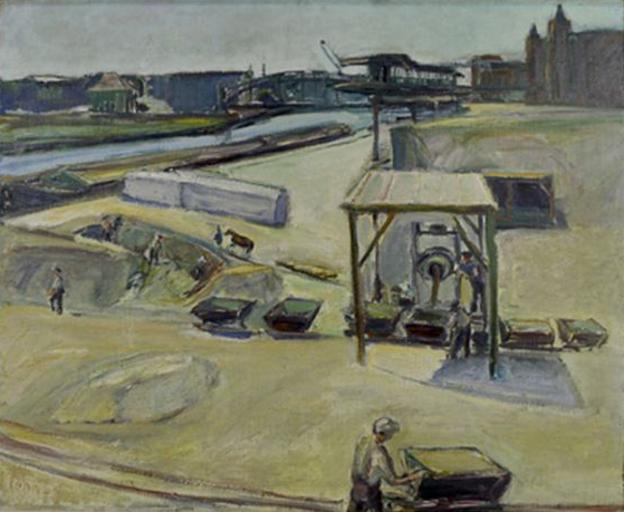 Keywords: Ludwig Jonas Cement Mixer.jpg Cement Mixer so rückseitig betitelt und bezeichnet Berlin Öl auf Leinwand undeutlich signiert 72x 87 cm http //www auktion-dannenberg de/ Auktionshaus Dannenberg by 1942 Creator Ludwig Jonas painter PD-old-70 Ludwig Jonas painter Images from Auktionshaus Dannenberg Paintings of Berlin Construction in paintings |
