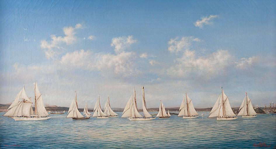 Keywords: Ludwig Rubelli von Sturmfest Segelregatta 1892.jpg Segelregatta vor Pula Pola 10 April 1892 lower left place/date L de Rubelli signature lower right Gorizia place lower right 1892 date lower right n 451 number lower right oil on canvas ca 55 x 101 cm http //www dorotheum com 1892 Ludwig Rubelli von Sturmfest PD-old-100 Images from Dorotheum Sailing in art Ludwig Rubelli von Sturmfest 1892 paintings Historical images of Pula Regatta sailing |