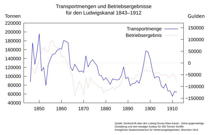 Keywords: Ludwigskanal Transportmengen Ergebnisse 1843-1912.svg Chart der auf dem de Ludwigskanal transportierten Mengen und der erwirtschafteten Betriebsergebnisse in den Jahren 1843 “1912 Chart of the transported amounts and profits or losses for the Ludwigs Canal in the years 1843 “1912 Own image 2008-06-01 jailbird Ludwig Canal |