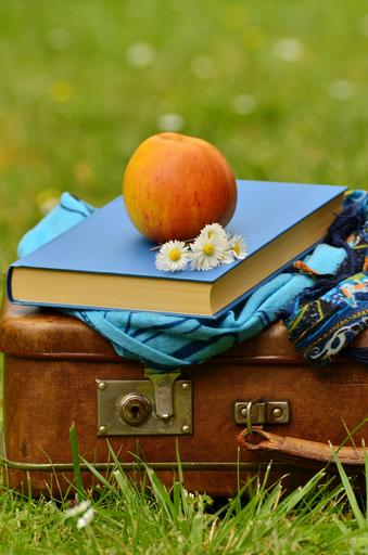MAKE A MEME View Large Image luggage old leather suitcase nostalgia old suitcase book read relax break click apple daisy meadow out