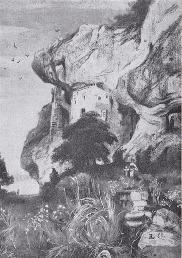 Keywords: Lugo Isteiner Klotz.jpg de Isteiner Klotz mit St -Veits-Kapelle Fritz Schülin Hermann Schäfer Pius Schwanz Istein und der Isteiner Klotz 3 Auflage 1994 S 51 Emil Lugo 1840-1902 1888 Emil Lugo Isteiner Klotz PD-old